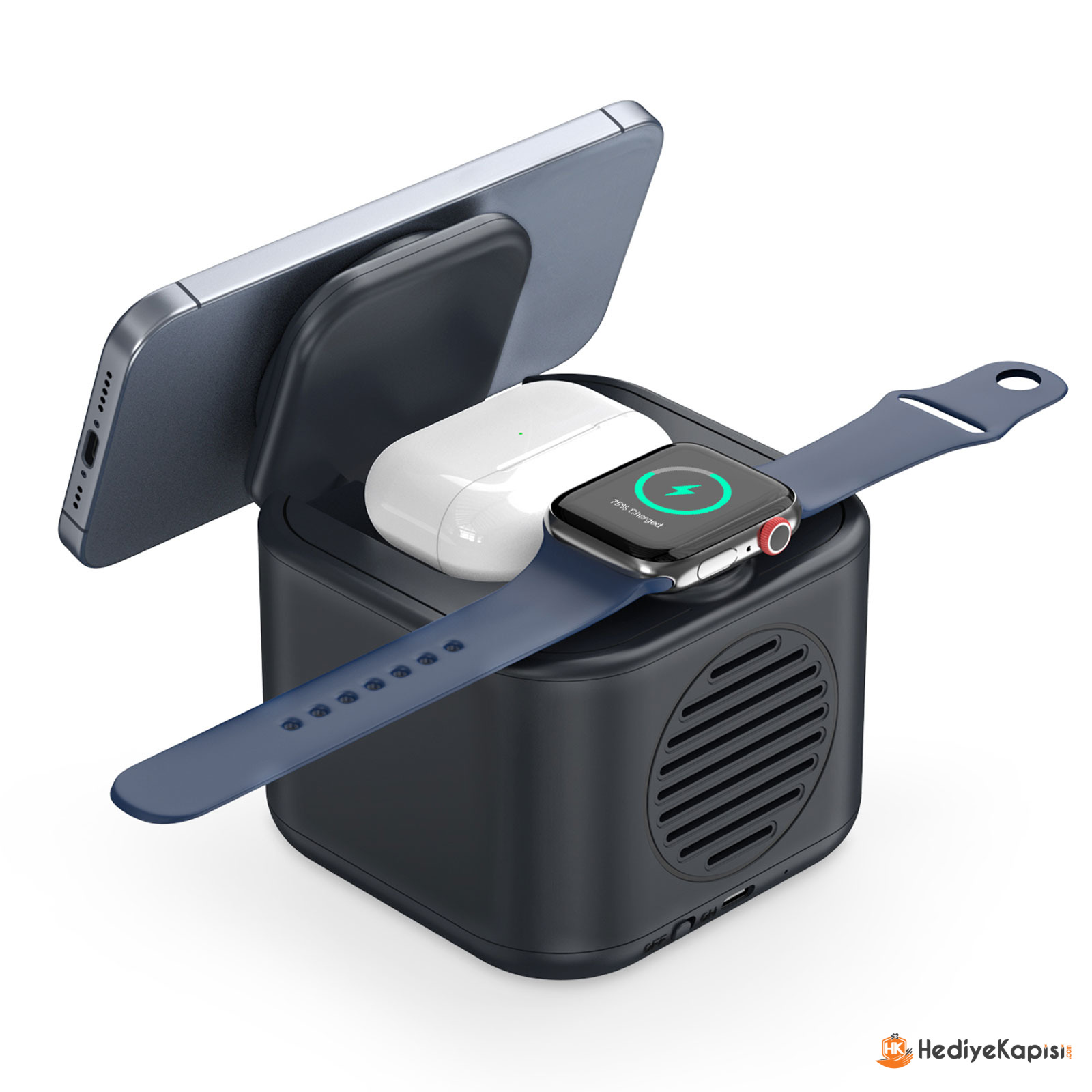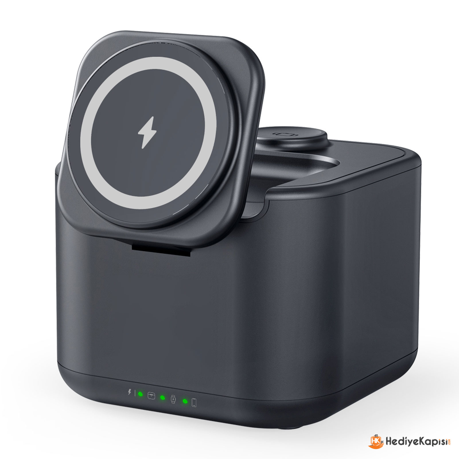 Led Işıklı | Rubber Kaplama Plastik Gövde | Magsafe (Magnetli) | Wireless Şarj özelligi | Magsafe Çıkış Akımları | Telefon: 15W | Kulaklık: 3W | Saat: 2,5W | Speaker: 5W | 2 Yıl Garanti | Baskı: Lazer